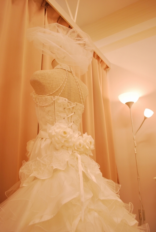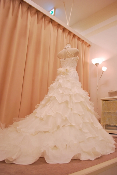 トレーンはプリーツ加工を施したチュールがポイントに。