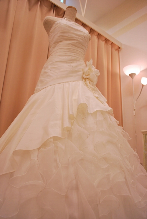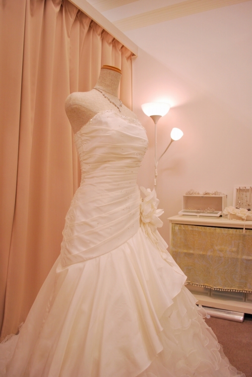 美しいボディーラインを描くデザインが女性らしい、ソフトマーメイドラインの1着。